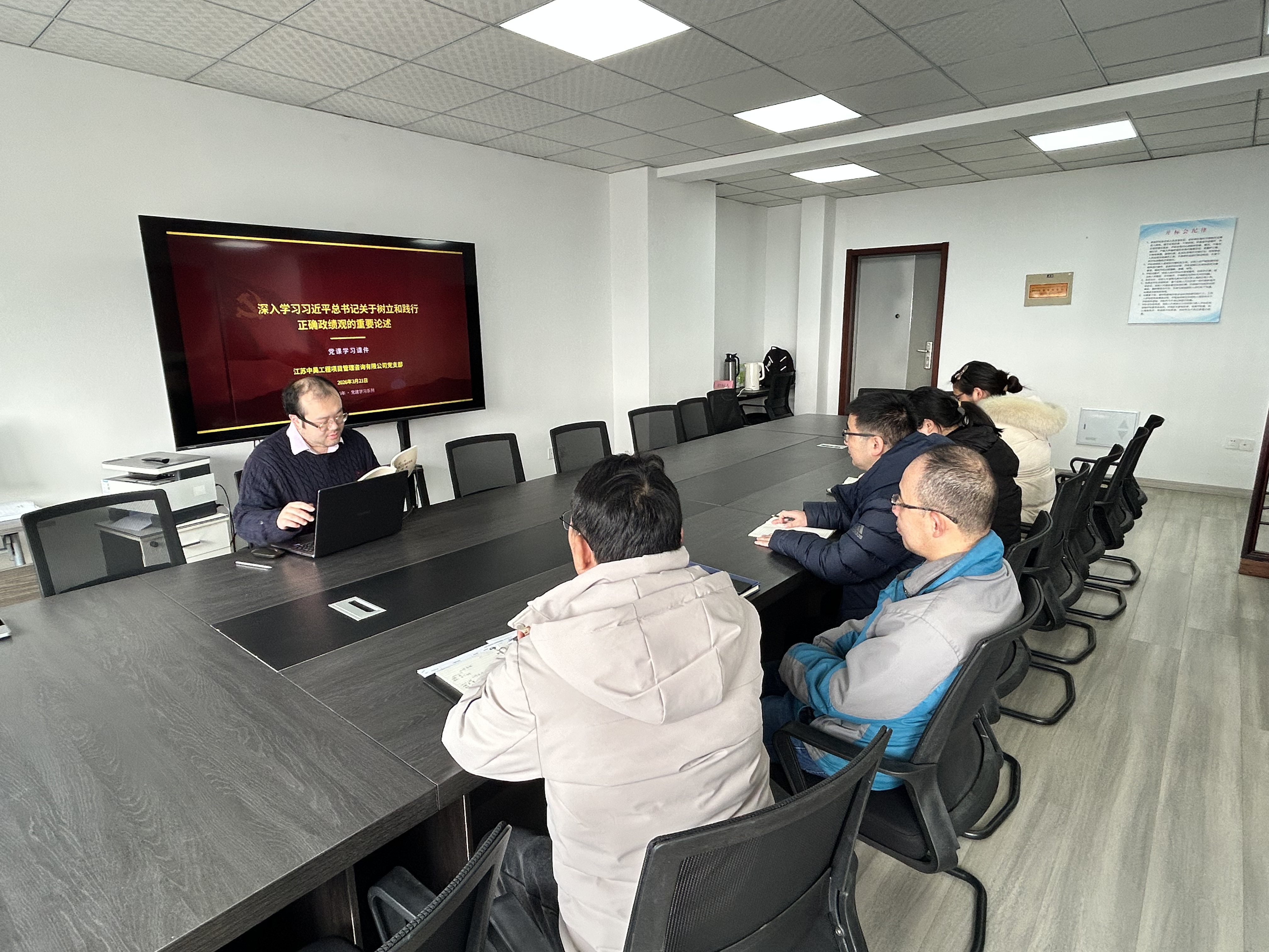 为深入学习贯彻习近平总书记关于树立和践行正确政绩观的重要论述,切实把思想和行动统一到党中央决策部署上来,近日,江苏中昊工程项目管理咨询有限公司党组织组织全体党员干部开展专题学习教育活动,推动理论学习入脑入心、见行见效。